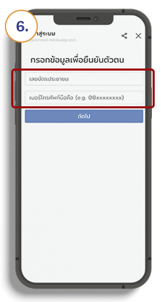กรอกเลขบัตรประชาชนและเบอร์โทรศัพท์มือถือที่แจ้งไว้กับสหกรณ์ฯ แล้วกดปุ่ม “ถัดไป
