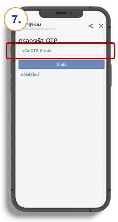 กรอก “รหัส OTP ที่ได้รับผ่านข้อความบนโทรศัพท์มือถือ และกดปุ่ม “ยืนยัน”